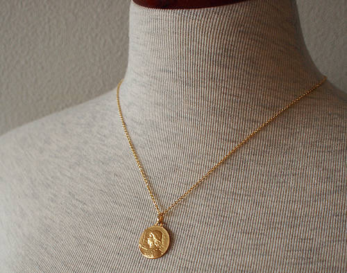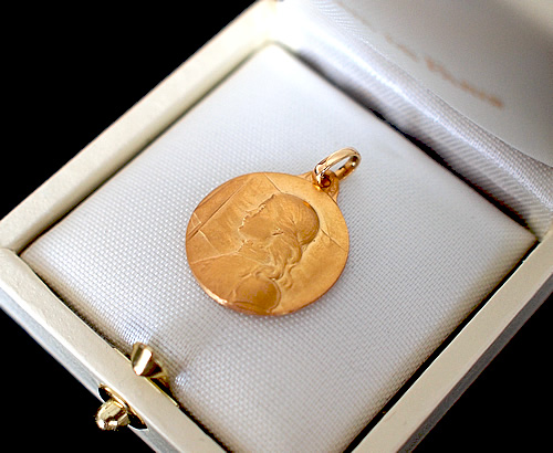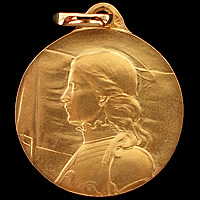 フランスの国民的英雄であり、聖女でもある「ジャンヌ・ダルク」が描かれた18金製(刻印有)のメダイです。在庫1点限りです。