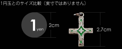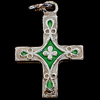 パリの教会で見つけたグリーンの七宝とクローバー模様が素敵なシルバーコーティング製のクロスチャームです。在庫1点限りです。