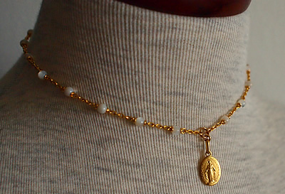 フランスで見つけたゴールドコーティング製の不思議のメダイ(FRANCE刻印有)と、マザーオブパールを使用したブレスレット兼ショートネックレスの2wayアクセサリーです。在庫1点限りです。