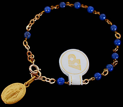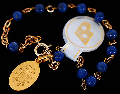 フランスで見つけたゴールドコーティング製の不思議のメダイと、ラピスラズリ製のビーズを使用したメダイブレスレットです。