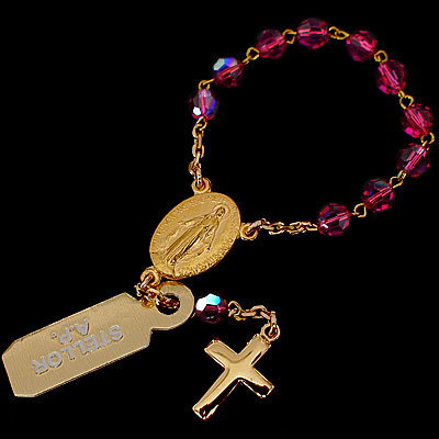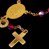 パープルの【スワロフスキー】ビーズが素敵なミニロザリオです。ゴールド部分は