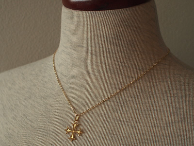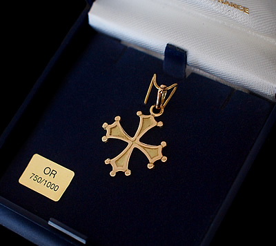 パリの教会で見つけた、フランスのコスメ【ロクシタン】でも有名なオクシタン地方に伝わるデザインの18金(K18/OR750)製のクロスペンダントです。