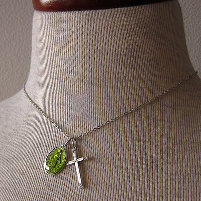 左写真のグリーンメダイとチェーンは別売です。