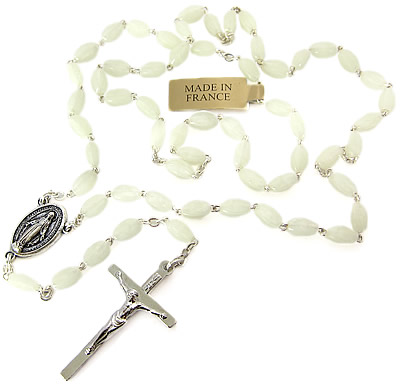 奇跡のメダイ教会で見つけたシンプルな乳白色のビーズが素敵なロザリオネックレス(頭囲61cm以内)です。