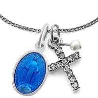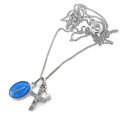 のメダイに、「カットガラスを埋め込んだクロス」、「スワロフスキー(クリスタルパール)」、「シルバーチェーン(45cm)」をセットにした当サイトオリジナルの