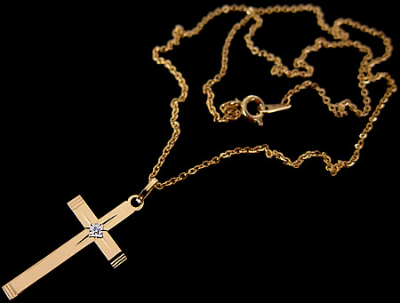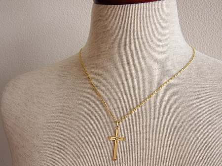 パリの教会で見つけたクロスの中心に輝くダイヤモンドに似たストーンが印象的な18金(K18/OR750)製のクロスペンダントです。