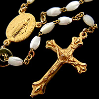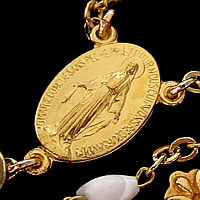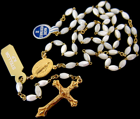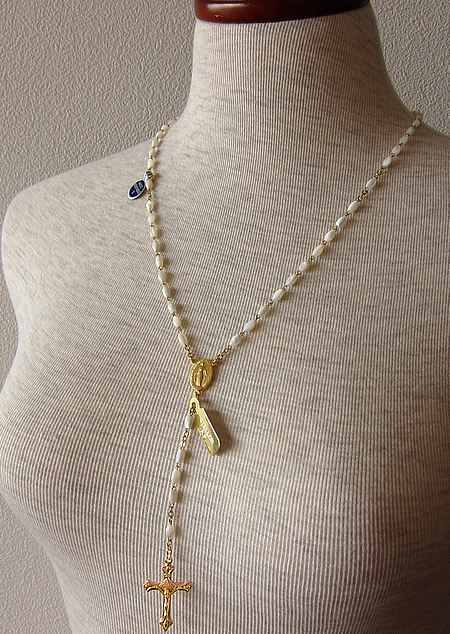 フランスで見つけたマザーオブパールと18Kコーティング製の不思議のメダイ&クロスで出来た素敵なロザリオネックレスです。