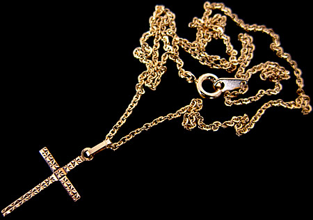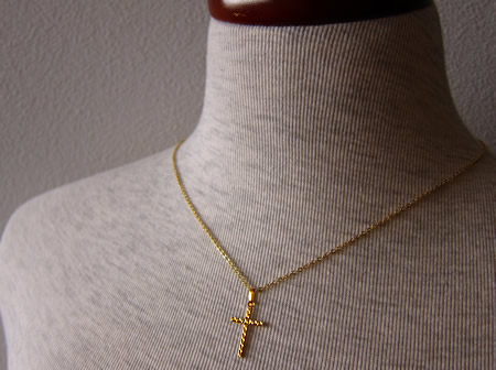 charm - cross - K18 パリの教会で見つけた小さいながらもしっかりと厚みのあるクロスに、繊細なカットが施された18金(K18/OR750)製のクロスペンダントです。 Cカン部分に刻印があります。在庫は1点限りです。 ◆ 左写真のチェーンは別売です。 >> 18金製の不思議のメダイはコチラ