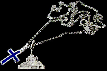 charm - cross SV925×blue - パリの教会で見つけたブルーエナメルとシルバー925製の組み合わせが素敵なプチクロスです。 ◆ 写真の右チャームとチェーンは別売です。 ◆ エナメル部分に数ミリハミ出しや剥げがあります。