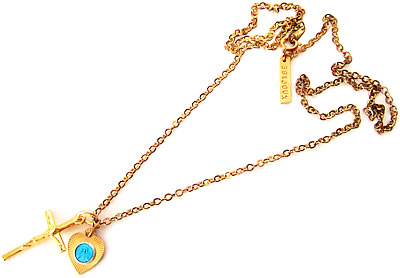 パリの教会で見つけたクロスチャームです。細身のクロスなので、どんなアイテムとも合わせやすいタイプです。左写真の様に、オリジナルチェーンやチャームを重ねづけするとステキです。