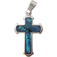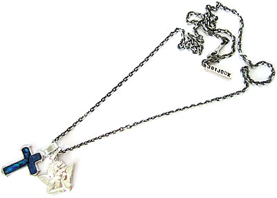 パリの教会で見つけたボリュームのあるクロスチャームです。シルバーフレームとエメラルドブルーのシェル模様が存在感を際立てています。左写真の様に、オリジナルチェーンやチャームを重ねづけしてもステキです。