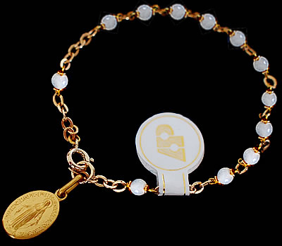 フランスで見つけたゴールドコーティング製の不思議のメダイと、マザーオブパール(ラウンドデザイン)製のビーズを使用したメダイブレスレットです。