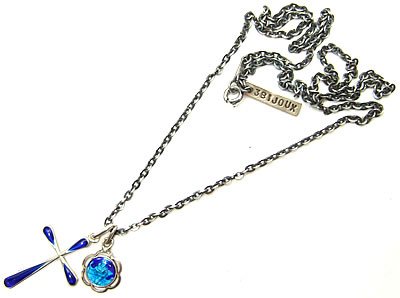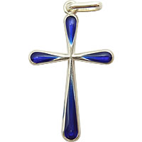 パリの教会で入手したシルバー925製(丸カンに925の刻印)のクロスチャームです。ブルーエナメルとドロップデザインのコントラストがとても可愛いクロスです♪