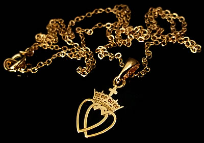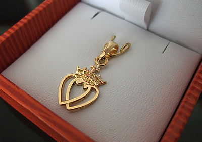 連なった2つのハート、その上には王冠とプチクロスというなんとも贅沢な組み合わせのとっても素敵な18金製(刻印有)のチャームです。