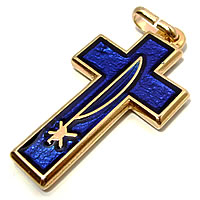 パリの教会で見つけた中央に描かれたハトと、ブルー×ゴールドのコントラストが素敵なクロスです。