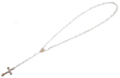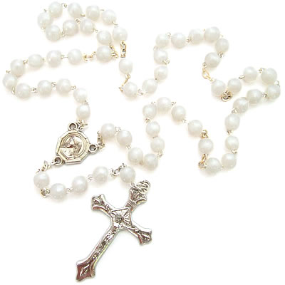パリの教会で見つけたホワイトプラスティックビーズのロザリオです。ロザリオは、祈りの回数を数えるための道具ですが、アクセサリーとして身につけてもステキです。長さがあるので、ネックレスとして身につけることが出来ます。