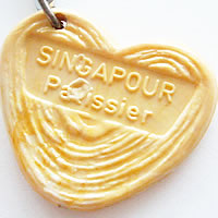 人気の食品シリーズ、SINGAPOUR Patissier ハート型ビスケットのキーホールダーです。源氏パイみたいですね。食べちゃいたくなるようなカワイサ!