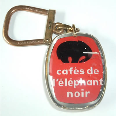 60S フレンチ ブルボンキーホルダー ”cafes de l'elephant noir”です。最近では、出回りにくくなっている事もあり、人気があります。ロゴと象さんの面の内部にくもりが点々とあります。