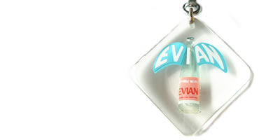 ミネラルウォーターのメーカーで、誰もがご存知のEVIANのブルボンキーホルダーが再入荷しました。人気の一品。