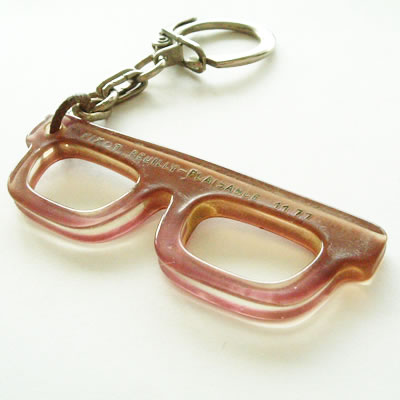 説明はいりませんね!メガネ広告宣伝用として作られたのキーホルダーです。フレームのフチが透明になっています。