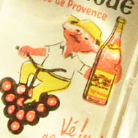 モルバン氏デザインのワイン宣伝広告キーホルダーです。ぶどうを乗り物にしちゃう所と、ホロ酔いムッシュの表情がカワイイ♪
