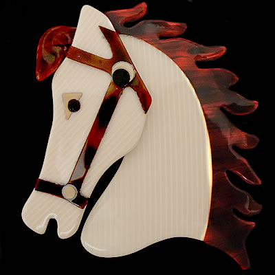 Lea Stein(2000s)のモダンブローチです。タテガミからホルター部分に至るまで、馬の細部が丁寧に再現された素敵な1点です!