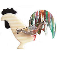 しっぽのマーブル模様がとってもキュートなニワトリのブローチです。