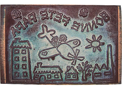 蚤の市で見つけたアンティークスタンプです。【BONNE FETE PAPA / 父の日のお祝いの言葉】の文字が波打っていて、とってもキュート♪フランスの街並みとあいまってなんとも素適なデザインに仕上がっています♪