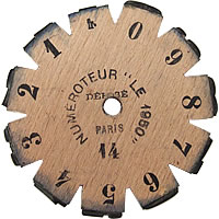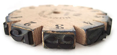蚤の市で見つけたアンティークスタンプです。0から9までの数字と小さいアルファベットのF(フラン:昔の通貨)が刻まれています。
