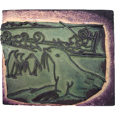 蚤の市で見つけたアンティークスタンプです。アザラシを中心に、雪国の情景が丁寧に描かれています。