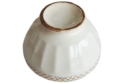 縁取りの柄がとでもかわいいカフェオレボールです。カケもなく、状態も良いです。ホワイトベースなので、柄が雪の結晶の様に見えてキレイです♪