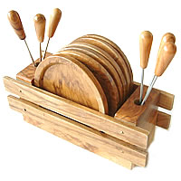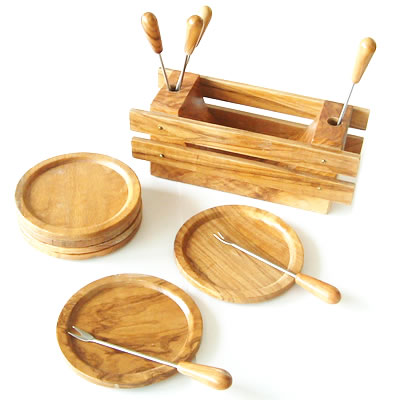 蚤の市で見つけたウッドコースター&フォーク6セットです。収納に便利のウッドケース付き。