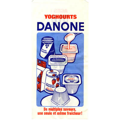 ヨーグルトメーカーでおなじみダノンの古いペーパーバッグです。両面に印刷されていてとってもキュート!シミなどなくキレイなペーパーバッグです。