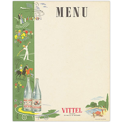 フランスのミネラルウォーターでおなじみのVITTELLのメニューペーパーです。挿絵がとってもカワイイです♪