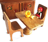 アンティークウッドのミニチュアセットです。イスの曲線具合が絶妙ですね♪年代モノの為、ボードの背面部分は補修された跡があります。オールハンドメイドです。