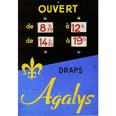 開店時間を午前、午後に分けて表示できるアンティークプレートです。フランスのカフェやでよく使われています。