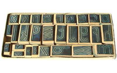 蚤の市で見つけたアルファベットのアンティークスタンプです。a〜zまで揃っているので、左の様に、いろんな文字を作れます。b・d・n・p・q・uは、逆さまにしてスタンプして下さい。スタンプ裏のウッド部分に、矢印が書いてますので、分かりやすいです。箱付きです。