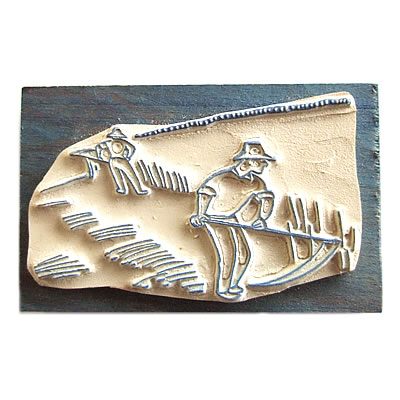 蚤の市で見つけたアンティークスタンプです。農場で土を耕している風景の絵です。ゴム板はとてもキレイな状態です。
