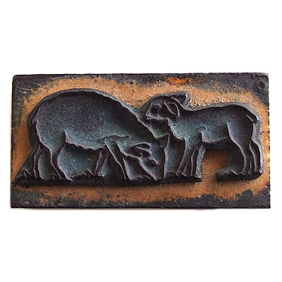 蚤の市で見つけたアンティークスタンプです。親子のヤギのスタンプです。お母さんヤギは、草を食べています。