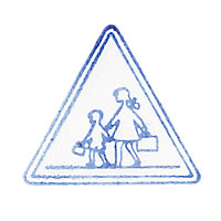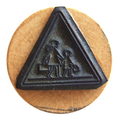 蚤の市で見つけたアンティークスタンプです。日本でも見かける横断歩道の交通標識です。女の子のおさげがカワイイですね!
