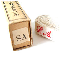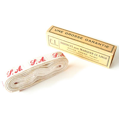 1900年代のアンティークイニシャル(SA)テープです。ファブリックのポイントにつけるとカワイイですよ♪ 年代ものにより、シミあり。