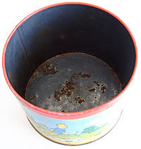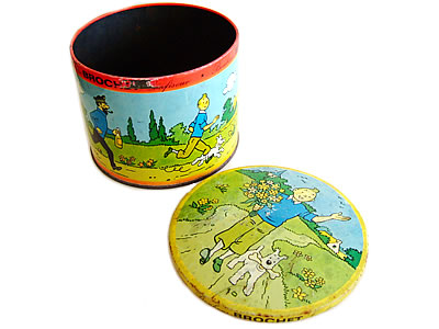 蚤の市で見つけたタンタンのキュートなTIN缶(1965年)です。サビは、所々ありますが、目だった缶のへこみもなく、タンタンFANにおすすめ♪なかなか出まわりにくいレアなTIN缶です。