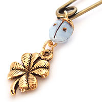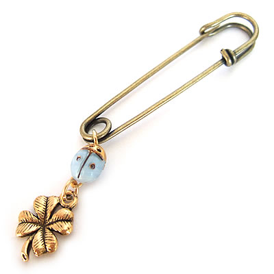 四葉のクローバーとてんとう虫モチーフのビーズが付いたとっても可愛いブローチです。こんな可愛いブローチだと、マフラー留めにしたりと用途がたくさんありますね♪