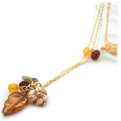 ブラウンリーフのビーズがとってもキュートな“mignon”のネックレスです。季節に関係なく身に付けられそうな色使いが嬉しいですね♪色違いにグリーンもあります。