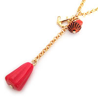 鮮やかな赤色とボリュームのあるビーズが印象的な“mignon”のネックレスです。連結部にあるチャームとビーズがポイント♪同デザインのピアスもあります!