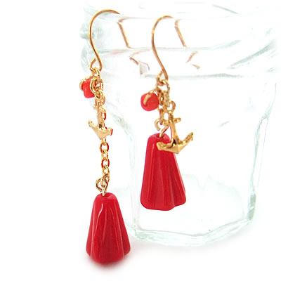 鮮やかな赤色とボリュームのあるビーズが印象的な“mignon”のピアスです。イカリのチャームとビーズがポイント♪同デザインのネックレスもあります!