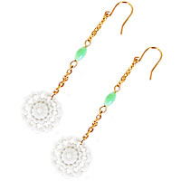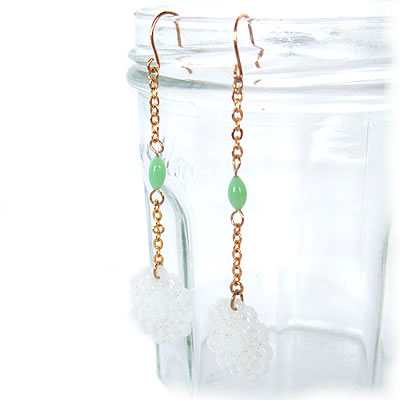 グリーンビーズとレースの様なお花がとってもキュートなピアスが再入荷しました。夏の装いをキュートに演出してくれること間違いなしです!