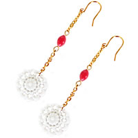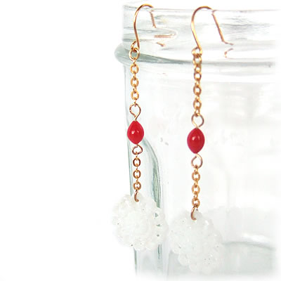 レッドビーズとレースの様なお花がとってもキュートなピアスが再入荷しました。夏の装いをキュートに演出してくれること間違いなしです!