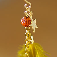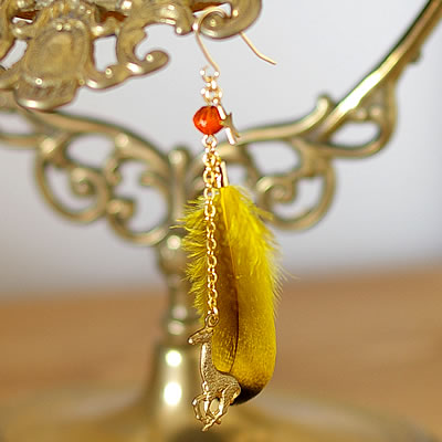 色鮮やかな黄色い天然の羽根と、キリンのチャーム(左向き)との組み合わせがとってもキュートな“mignon”のピアス(片耳タイプ)です。