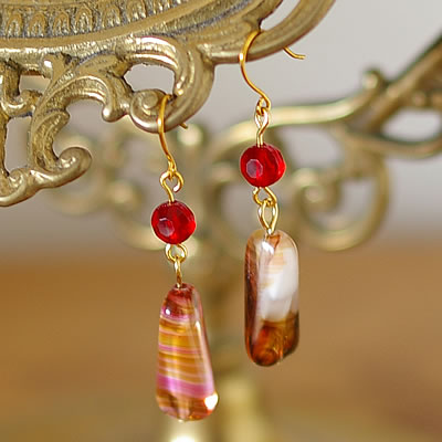 マーブル模様のビーズと、赤のアンティークビーズとの組み合わせがとっても素敵な“mignon”のピアスです。